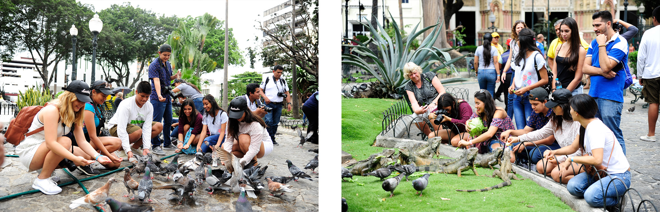 Junto a los fotógrafos de InstaGuayaquil los chicos compartieron la experiencia de fotografiar especies urbanas como las iguanas del parque Seminario, donde Daniela Taipe comparó las diferencias culturales entre Galápagos y Guayaquil, donde las reglas de visita del Parque Nacional prohíben el contacto y alimentar a las especies. En Guayaquil tuvo la oportunidad de dar de comer lechuga a las iguanas del parque y alpiste a las palomas de este espacio turístico del “Puerto Principal”.